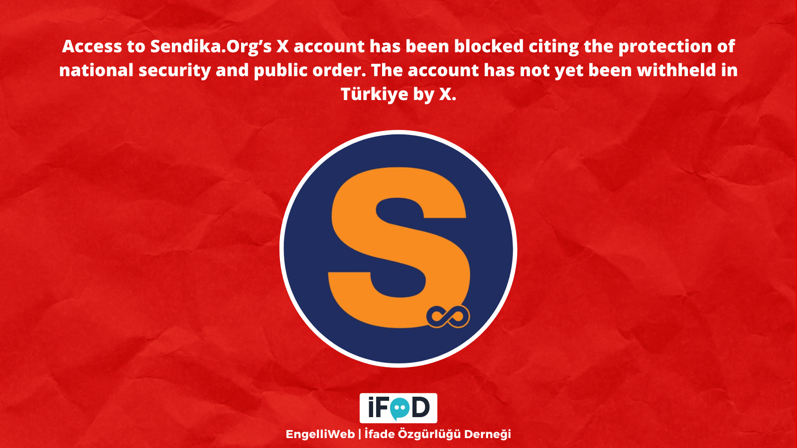 Access to Sendika.Org‘s X account has been blocked citing the protection of national security and public order. The account has not yet been withheld in Türkiye by X.