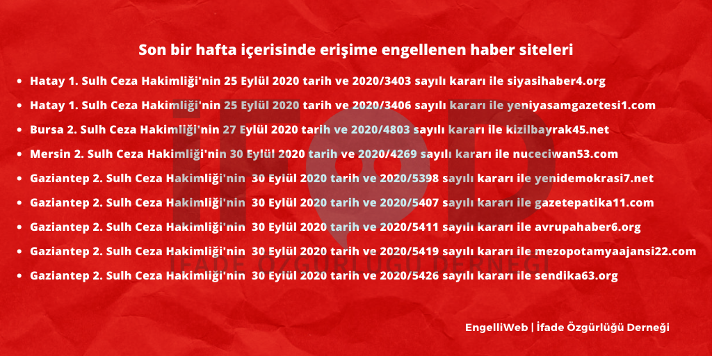 - Hatay 1. Sulh Ceza Hakimliği’nin 25 Eylül 2020 tarih ve 2020/3406 sayılı kararı ile yeniyasamgazetesi1.com