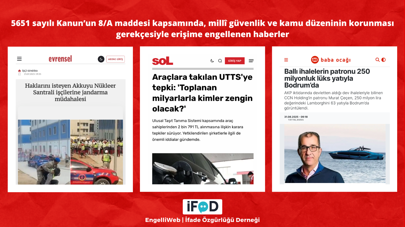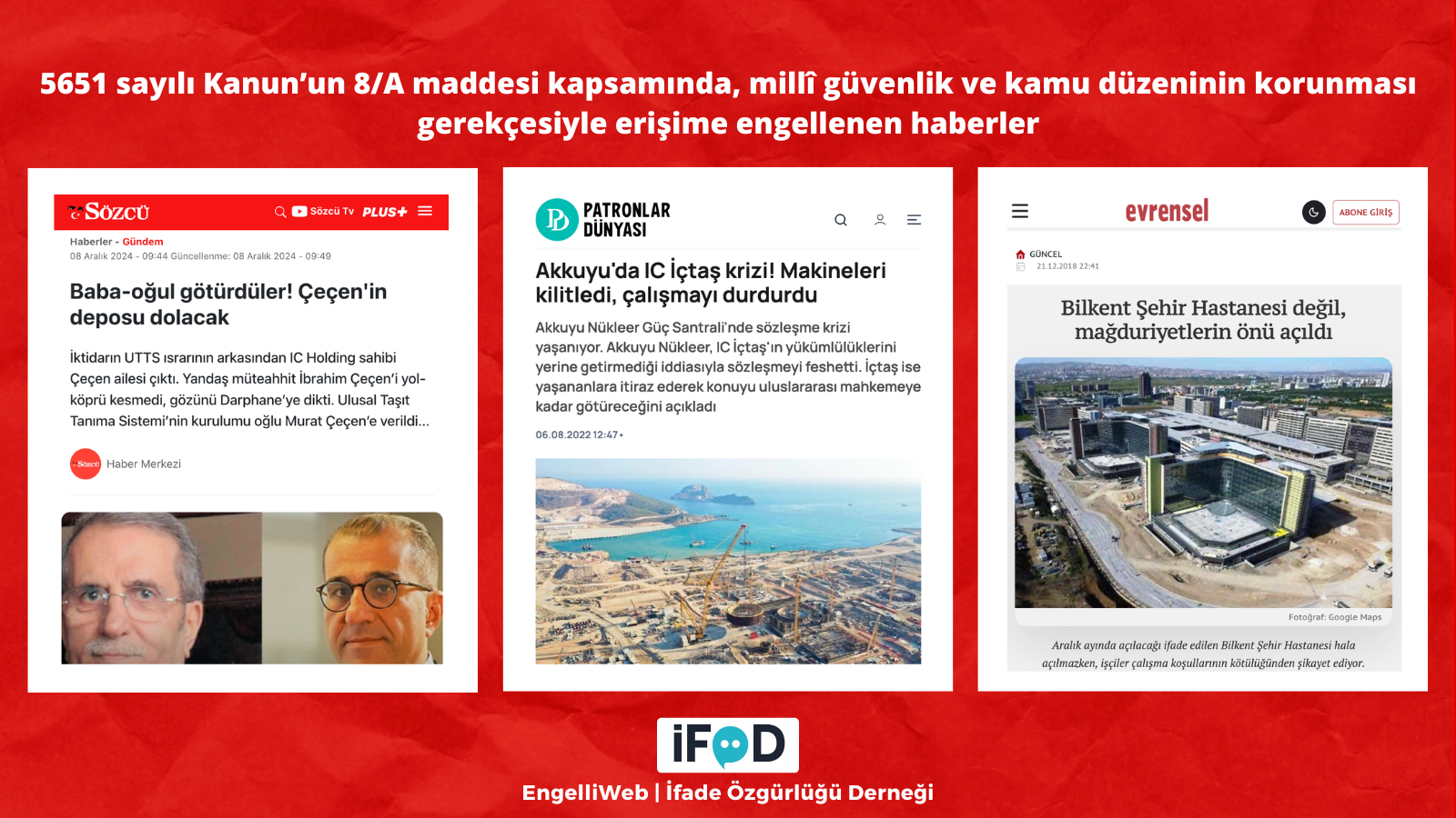 IC Holding, CCN Holding, grup şirketleri ve holdinglerin sahiplerinin (İbrahim Çeçen ve Murat Çeçen) adının yer aldığı birçok haber, Gaziantep 5. Sulh Ceza Hakimliğinin 13 Şubat 2026 tarihli ve 2026/530 sayılı kararıyla, millî güvenlik ve kamu düzeninin korunması gerekçesiyle erişime engellendi.