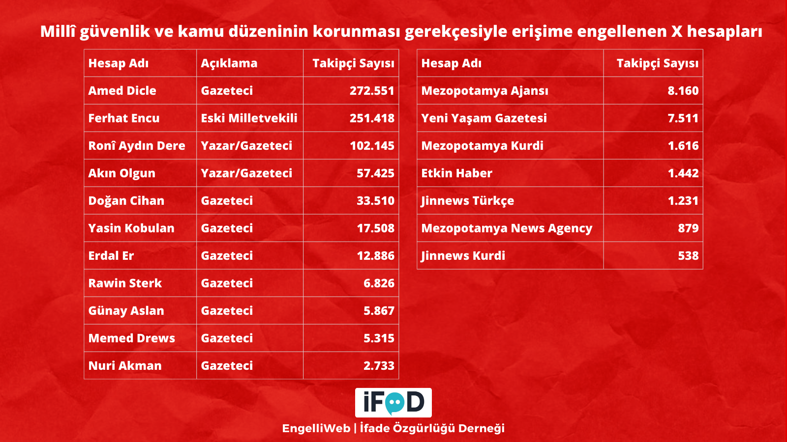 Hesabı erişime engelleneler arasında milletvekili Kamuran Tanhan ve eski milletvekili Ferhat Encü‘nün de hesapları bulunuyor.