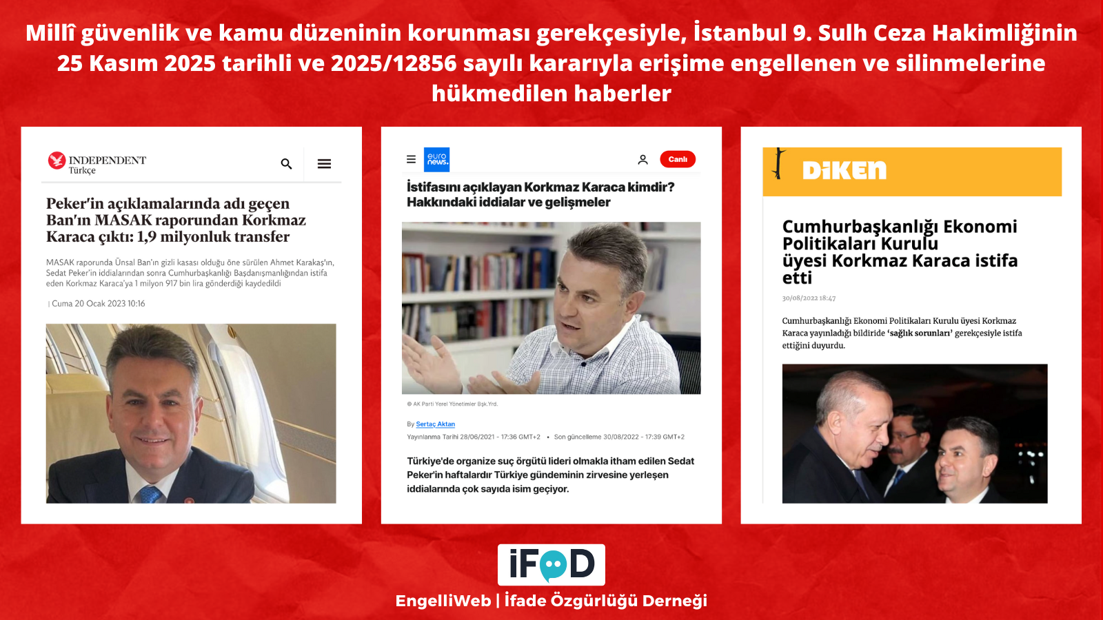 Cumhurbaşkanlığı Ekonomi Politikaları Kurulu’nun eski üyelerinden Korkmaz Karaca hakkındaki haberler, millî güvenlik ve kamu düzeninin korunması gerekçesiyle İstanbul 9. Sulh Ceza Hakimliğinin 25 Kasım 2025 tarihli ve 2025/12856 sayılı kararıyla erişime engellendi ve silinmelerine hükmedildi.