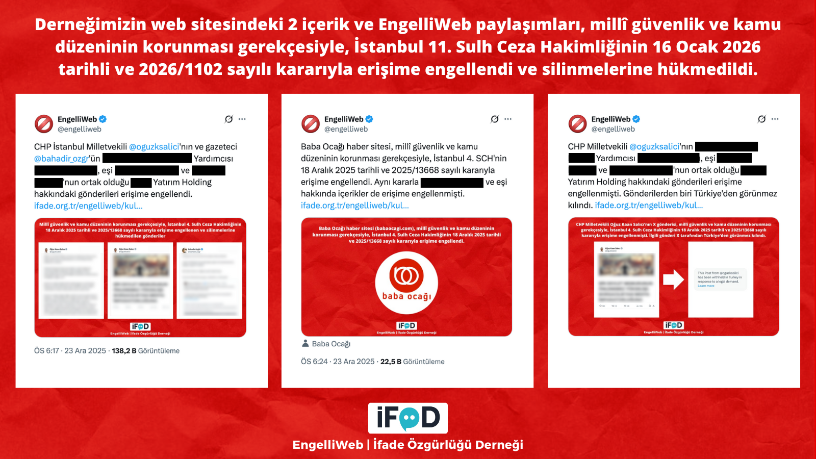 Bursa’daki “Carrefour Arazi”nde, Atış Yapı ve Katılımevim ortaklığıyla yürütülen projelerde mağduriyet yaşayanların Katılımevim Genel Merkezi önünde yaptıkları eylem hakkındaki haberler, millî güvenlik ve kamu düzeninin korunması gerekçesiyle, İstanbul 1. Sulh Ceza Hakimliğinin 21 Ocak 2026 tarihli ve 2026/836 sayılı kararıyla erişime engellendi ve silinmelerine hükmedildi.
